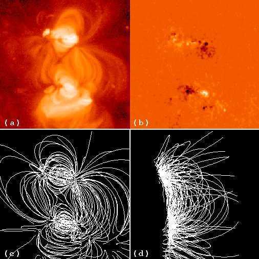 (c) (d) Gráficos dos respectivos campos magnéticos de topo e perfil.(David H. Hathaway - NASA) -