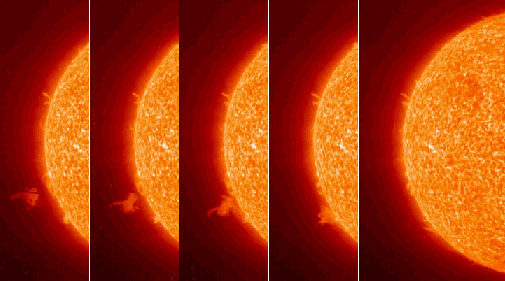 Estes arcos levam toneladas de plasma solar para centenas de milhares de km acima da superfície e são chamados proeminências.