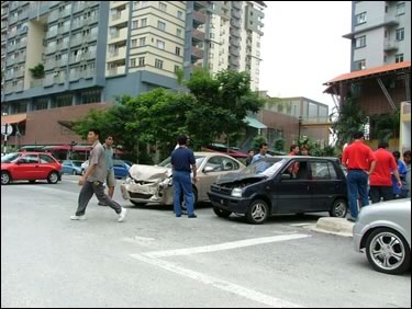 Gambar2 ini dihantar oleh sahabatku Shuk minggu lepas. Siapa pemegang hakcipta gambar2 ini tidak diketahui tetapi gambar2 ini menjadi tajuk perbualan yg hangat. Ini bukanlah gambar perlanggaran Gen-2 yg pertama yg pernah disebar secara meluas di Internet. Ada gambar sebelum ini, Gen-2 berlanggar secara berdepan dengan tiang. Carilah di Autoworld.com.my. Kerosakan sebenar sang Kancil tidak dpt diketahui sepenuhnya melalui gambar2 ini jadi apa yg diketahui ialah Gen-2 berlanggar secara hadapan dengan sisi kanan sang Kancil. Lihat saja kehilangan sebelah lampu depan sang Kancil. Badan kereta dibina supaya zon penumpang tidak mengalami kerosakan teruk akibat perlanggaran. Oleh itu, jurutera kereta perlu membina struktur badan kereta yg mampu melakukannya berdasarkan piawaian antarabangsa. Terdapat beberapa program penilaian bebas yg mengeluarkan keputusan ujian perlanggaran mereka ke atas pelbagai model beserta gambar. Antaranya ialah EuroNCAP. Apabila perlanggaran secara hadapan berlaku, zon kemekan (? crumple zone) akan bertindak. Oleh kerana adanya bahagian hadapan yg memuatkan enjin kereta, crumple zone hadapan lebih banyak. Ini berlainan dgn perlanggaran sisi. Crumple zonenya lebih terhad. Bayangkan apa yg berlaku jika kereta anda dilanggar secara sisi dgn kemekan yg berlaku apabila perlanggaran hadapan. Leperlah jawabnya penumpang kereta. Oleh itu, perlanggaran Gen-2 dan Kancil ini hanyalah berdasarkan hukum fizik sahaja di mana kesan perlanggaran cuba diserap sebanyak mungkin dlm crumple zonenya agar dpt menyelamatkan penumpang kereta. Kalau nak kaji lebih lagi, kenalah tahu kelajuan kereta, darjah hentaman dan macam2 lagi. Ini bukan perkara main2, malah pengeluar kereta seperti Mercedes-Benz mengkaji kereta keluarannya yg terlibat dlm perlanggaran. - Pendapat anda ? - 11/04/2004