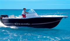 WHITE SHARK 245 - 7,43 X 2,67 m pot.max: 300cv o 2 x 175 cv - C-8 - Tanque: 400 lt - Agua: 80 lt - Calado: 0,60m - Motor fb simple o doble instalacion - Peso casco solo: 1.600kl - Desde 57.194 + iva 16% con 225 cv 4 tiempos o 63.391+ iva con 2 x 140 cv 4T