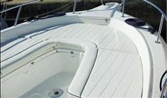 Este modelo, tiene la cubierta aprovechada en su totalidad, no tiene cabina en proa y en esta suelen tener una cama o solarium(0pcion).Es una embarcacione util para usar durante los 6 o 7 meses de buen tiempo, para tomar el sol, ba�arse, hacer pesca submarina o de ca�a,tambien practicar el ski. Esta barca sustituye a las neumaticas,semirigidas y por supuesto a las lanchas sport con cola en Z(3 fuelles de goma) y bloque motor de hierro(que se oxida),ya que los f/b de 4 tiempos, son autenticamente marinos y no hay que agujerear el casco, tambien la combustion es externa, no hace falta extractor de gases, como en las colas en Z y su riesgo de explosion e incendio es menor.Ademas no tienen mantenimiento ni roturas; y se pueden arrastrar, varar, sacar con remolque sin riesgos. Actualmente este barco se esta usando el resto del a�o en invierno para pesca de chambel y curry, dada su gran carena y superestabilidad en parado. Se le suele montar una capota bimini con tubo de inox grueso y resistente(opcion). Tambien un techo Top, cuadrado para consola.