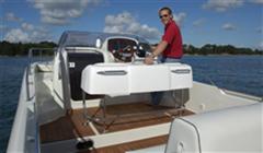 Uso multiple: familiar, paseo, velocidad, pesca, diseño moderno, Puesto pilotaje, con sillon comodo, para piloto, visibilidad- bañera amplia(+ cajones de estiba) con pasos laterales grandes, hacia proa- Acceso al barco por proa o popa.
