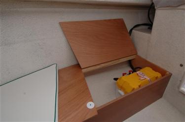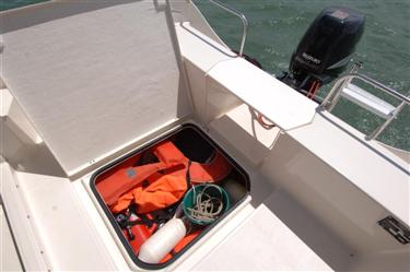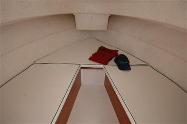 proa, debido a su gran flotabilidad,por su construccion en sanwich y relleno de proa y popa con espuma.