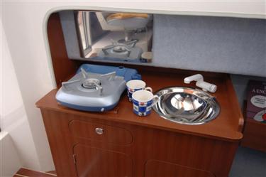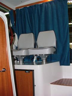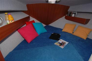...En el interior esta version estandar, trae ,mueble de cajones,con fregadero y grifo a presion. Asiento piloto y copiloto separados de gran confort-Mesa comedor 5 personas en proa.