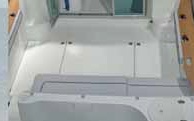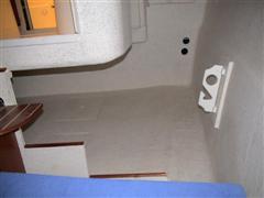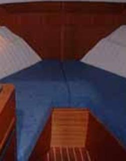 -En la parte central de cabina de proa, se crea un espacio mas diafano, facil de limpiar, quitando moquetas.Dispone de un gran mueble de estantes, para carretes,cebos artificiales, nylon, plomos, cajas de pesca, y otros accesorios de pesca.Dos grandes perchas para ropa, La cabina ya en proa,tiene dos camas en v, bajo las cuales hay grandes cajones de estiba.