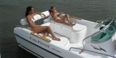 B2-650 CABIN CRUISER: Este modelo es muy completo de acabados y detalles de teka, piezas de inox. Es para uso,de velocidad,paseo,baño y tomar el sol gracias a sus 2 solarium puesto que hace mas de 35 nd, con 115 cv. En esta medida, tiene una gran distribucion interior, con 3 partes diferenciadas: proa con solarium- popa con 2 asientos piloto y copiloto, mas asiento en popa de 4 personas, que se transforma en otro gran solarium; por ultimo, cabina, con wc quimico y fregadero con grifo.