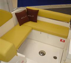 Este modelo de EOLO 750 CABIN CRUISER,es una novedad 2009 tiene unas caracteristicas diferenciales con las demas marcas.con un diseño muy ergonomico y elegante. Su casco es de alta perfomance, muy avanzado de diseño, con planos y formas para navegacion, sin sobresaltos ni pantocazos,suben de velocidad, sin elevar proa. Igualmente su estabilidad, tanto en parado, como navegando es brutal . Su distribucion es moderna y original, con una bañera en popa, muy aprovechada, dispone de mesa,asiento en popa y en lateral de babor, asiento y cuadro de mando muy elegante.