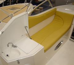 En este modelo en cambio, se puede tomar el sol,comer,poner una mesa,pasearse,bañarse, pesca submarina.Esta fabricado con doble casco, con bloques de poliuretano, siendo totalmente insumergible.Esta fabricado en Francia 100%, no es made in Polonia, por lo que se nota su estabilidad y navegacion perfecta,con un desplazamiento de aguas perfecto. Ademas ocupa con remolque solo 4,80m encima del remolque, contando la lanza y la altura, no llega a 1,40 m.