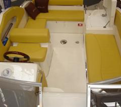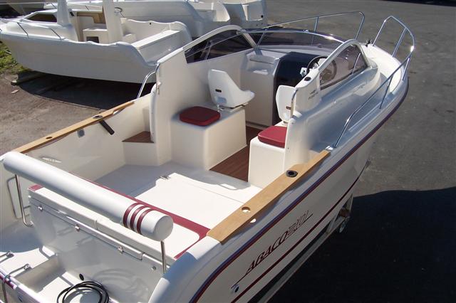 Su cabina dispone de dos literas en proa, WC independiente, con lavabo - bloque cocina con fregadero y cajones de estiba.En popa dispone de una conejera, con cama de matrimonio. Es ideal para paseo, baño, para pernoctar un fin de semana.El cliente de este barcopuede navegar sin miedo y sin los problemas de las colas sterndrive, con fuelles que traspasan el casco, para conectar la transmision a un motor, antiguo y obsoleto, con bloque de hierro, que pueden traer entradas de agua, un simple caracolillo, puede cortar un fuelle de goma Este barco en cambio, diseñado para una motorizacion ultramoderna fueraborda YAMAHA 4 tiempos inyeccion ecologica - autolavado de culata de aluminio con agua dulce - sin ruidos, sin humos, bajo consumo, con combustion externa sin problemas - elevacion total del motor fuera del agua -sin agujeros en casco - Podra vd varar en la playa y pasar un fin de semana agradable . Es un autentico barco superclase y elegante, que se puede personalizar eligiendo el color de casco que se desee: verde esmeralda- rojo bermellon – vainilla – azul navy