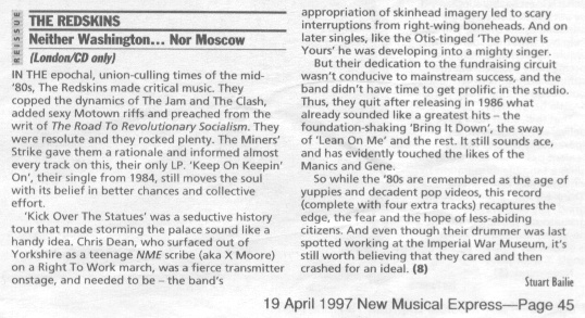 Neither Washington Nor Moscow CD Reissue, NME 19th April 1997
