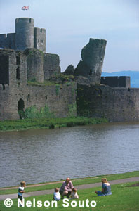 254012, Gran Bretaña, Gales, Caerphilly, a orilla del castillo