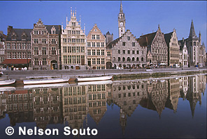 291021, BÉLGICA , FLANDES, GANTE, MUELLE DE LAS HIERBAS, RÍO LEIE |