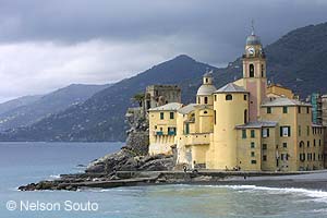 | 325269, Italia, Liguria, Golfo de Beigua, Cogoleto, playa pública | 325173, Italia, Liguria, Golfo Paradiso, Camogli, iglesia, Apeninos |