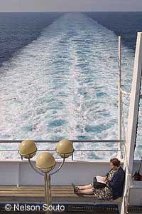 | 325019, Grandi Navi Veloci, ferry crucero grupo Grimaldi, Mediterráneo, Solarium cubierta | 325020, Grandi Navi Veloci, ferry crucero grupo Grimaldi, Mediterráneo, Popa. |