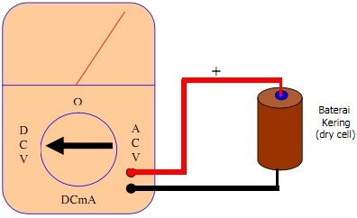 3 DCV Multimeter mampu mengukur tegangan dari baterai kering/dry cell (dengan
