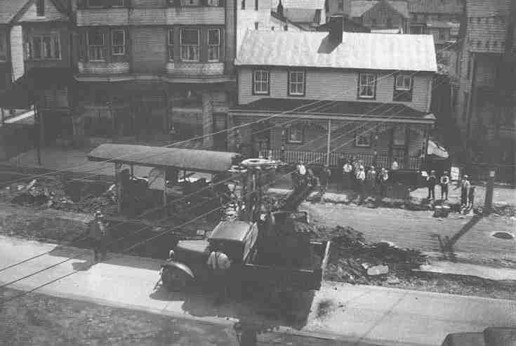Catawissa Streets. A rope was attached to the Eagle Hotel on the right