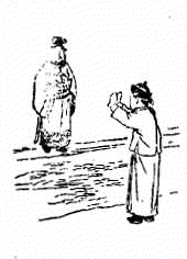 金聖嘆:「一人在前,一人在後,有往無來,無獨有偶,以此殿圖,其寓意至深遠焉。無象之象勝於有象。我以不解解之,著者有知當亦許可。」