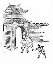 坎下巽上 渙 讖曰: 萬人不死 一人難逃 頌曰: 東邊門裏伏金劍 勇士後門入帝宮 |