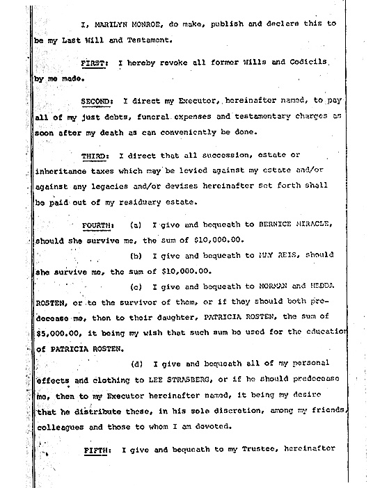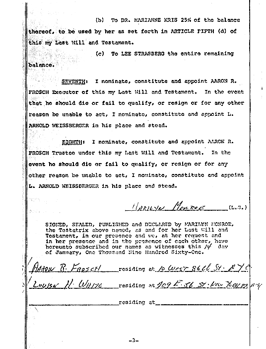 SIGNED, SEALED, PUBLISHED and DECLARED by MARILYN MONROE, the