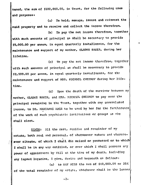 BAKER, and MRS. MICHAEL CHEKHOV to pay over the principal