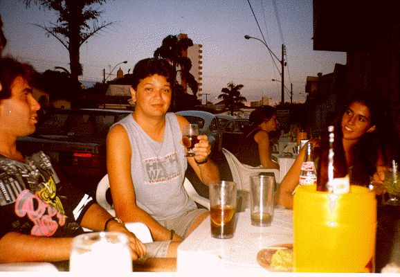 Esq. p/ dir.: Alt, Tracer e a gatinha Heloísa (salvando a foto) apreciando a bebida oficial maldita: Coca com gelo e limão