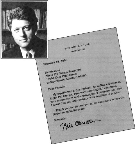 On the morning of January 20, 1993, almost 250,000 members of Alpha Phi Omega had the opportunity to witness a unique event. One of our own fraternity brothers was inaugurated as the 42nd President of the United States of America.