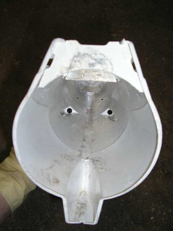 Vorne in die Messingstange muss ein Loch gebohrt und ein 2 mm Messingdraht eingelötet werden. Der wiederum schiebt sich in das Gas-Ausstoßröhrchen des Torpedos hinein und muss bis gut in die Mitte des Torpedos reichen. Damit ist er auf den ersten Zentimeter im Rohr von dem Draht geführt. Auf die vordere Seite der Unterlegscheibe wird ein Gummi aufgeklebt, das dichtet den Torpedo ab - aber nur wenn er dagegen gedrückt wird.