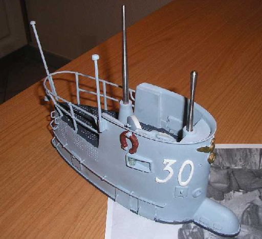 montiert- damit 's bei geöffnetem Luk 'rausscheint. Das Turmdeck ist mit REVELL 78 lackiert