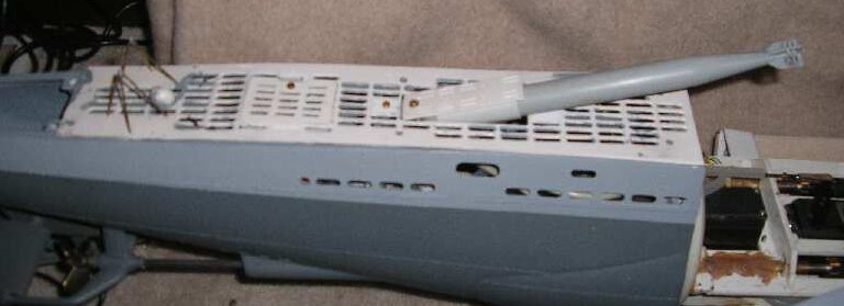 Am letzten Wochenende konnte ich wieder was an meiner U 94 machen und hab' als Erstes mein Schaltmodul bzw. meine Turmbefestigung eingebaut, außerdem Vorder- und Achterdeck nochmals angepasst (musste noch etwas geändert werden wegen meiner Torpedoluken) und dann hatte ich mich noch mit meiner Servobox für die vorderen Tiefenruder beschäftigt: Die Box ist zwar schon seit Februar auf dem Druckkörper verklebt, doch muss der Verlauf der Gestängeführung wegen der Turmhalterung geändert werden...werd’ ich schon hinkriegen „…doch es ist verflucht eng und wenig Platz - ist eben ein U-Boot…“. Na, man wird seh'n.