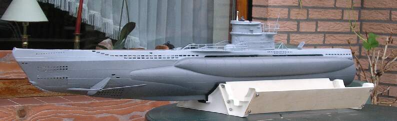 Hier noch mal die Gesamtansicht zum gegenwärtigen Zeitpunkt; wird bestimmt mal ein „Jäger im Weltmeer“. Wenn ich mir das Bild so angucke kann ich es kaum erwarten, mit dem Boot auf Feindfahrt gehen zu können. |