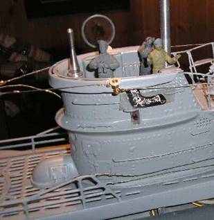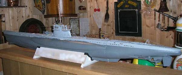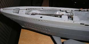 Kurz vor Jahresende kann ich endlich berichten, daß meine U 94 von außen bis auf Lackreparatur und Alterungsschritte komplett fertig ist (endlich…..nach ungefähr 3 Jahren Bauzeit). Für die Alterung liegen schon Eisenreste draußen, müssen aber noch ordentlich rosten - nichts wirkt besser auf einem Modell wie Originalrost. Auch die Besatzungsmitglieder müssen noch bemalt werden.