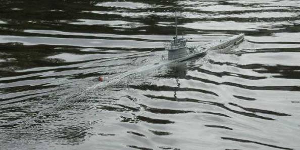 Der anschließende Auftauchvorgang klappte dann auch sehr zufrieden stellend. Weil der vordere Tank zuerst gelenzt wird, sieht das Auftauchen recht realistisch aus. |