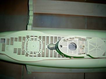 Blick in die Turmwanne, in der auch das Turmluk erkennbar ist, was aber momentan noch nicht mit dem Brückendeck verklebt ist.