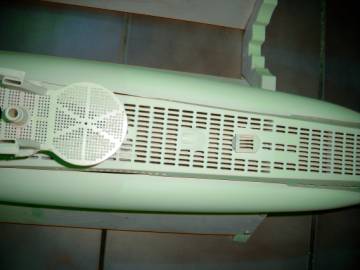 Gestern Abend habe ich noch das "Kombüsenluk" (es gab nur eins, aber zum besseren Verständnis: Ich meine das Luk hinter dem Turm; das andere Luk im Bereich der 8,8 war für Munition vorgesehen, die dann nach oben gereicht wurde) vom ROBBE- Deck herausgetrennt (was im übrigen ja wohl an der völlig falschen Stelle sitzt und dann auch noch verkehrt herum angeordnet ist).