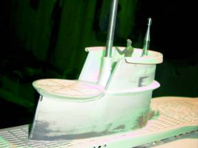 Momentan habe ich wenig Zeit zum Basteln. Zur Zeit bin ich mit dem Turmumbau beschäftigt. Der Turm ist ja schließlich Hauptmerkmal beim Überwasserschiff und sollte nach Möglichkeit reich detailliert werden (zu berücksichtigen ist, dass es sich um ein Funktionsmodell handelt).