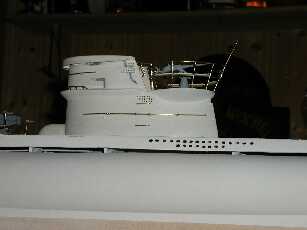 Zu Beachten die Klüse für den Schlepphaken an der Bugspitze sowie die Schutzbügel (Messingdrähte) an den Tiefenrudern.