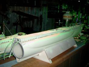 Meine Bauversion beinhaltet ein halbdynamisches Tauchsystem, d.h. das Boot benötigt zum Tauchen wesentlich weniger Fahrt. Darum können die mitgelieferten Motoren mit halber Netzspannung von 3 Volt betrieben werden. Ich denke mal, dass die Bewegungen des Bootes damit auch realistischer aussehen werden.