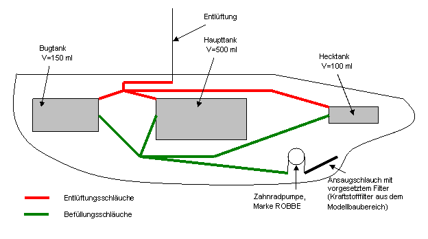 Eventuell muss ich noch Rückschlagventile einbauen, aber das wird sich erst zeigen wenn es soweit ist und das Boot getrimmt wird.