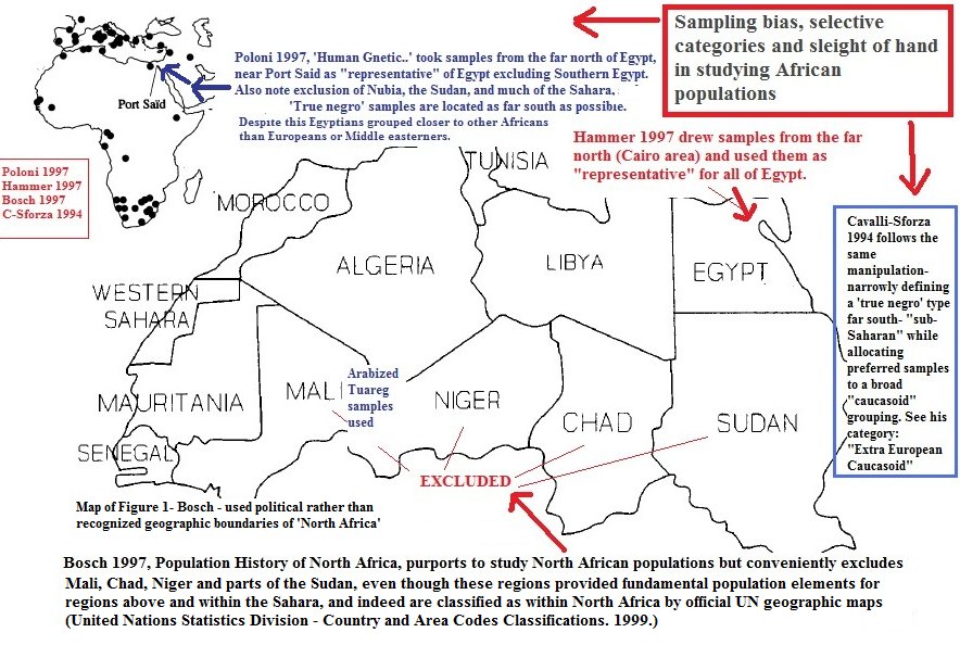 of Egyptians and sub-Saharan Africans detailed in