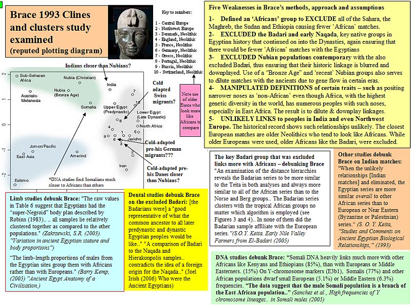 "In this regard it is interesting to note that limb proportions of Predynastic Naqada people in Upper Egypt are reported to be "Super-Negroid," meaning that the distal segments are elongated in the fashion of tropical Africans.....skin color intensification and distal limb elongation are apparent wherever people have been long-term residents of the tropics." (C.L. Brace, 1993. Clines and clusters..")