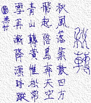 qiu1 feng1 luo4 ye4 san4 si4 fang1;