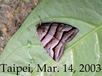 | possibly Hypena parva Wileman, 1916 | appears to be Rivula leucanioides (Walker) | Oglasa costimacula Wileman | Calyptra minuticornis (Guenée) |