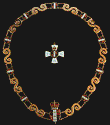 A special Chain is to be worn by the Sovereign and the Chancellor, and is composed of links of the central medallion of the Badge and gold Koru (in the form of the letter S) with, in the centre, a representation of the New Zealand Coat of Arms from which the Badge of the Order hangs. The Koru is a stylised representation of a fern frond and may symbolise new birth, growth, vitality, strength and achievement. Details of the design are derived from the chain of the Order of St Michael and St George.