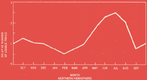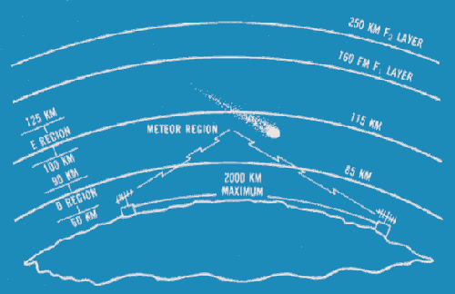 RUIDOS DE FONDO Por definición de sensibilidad, se entiende la característica que tienen ciertos dispositivos electrónicos receptores para detectar señales radiales de mayor o menor intensidad . Si un receptor de radio tiene una capacidad de poder detectar señales de radio de muy baja intensidad entonces se dice que tiene gran sensibilidad. La sensibilidad de cualquier receptor de radio esta limitada por su propio ruido electrónico de fondo, el cual, como sabemos, esta generado por las etapas amplificadoras del mismo dispositivo receptor. O también por algún tipo de fuente externa. Debido a que las estelas meteóricas poseen un gran factor de dispersión en el espacio esto genera que el régimen de las perdidas de la densidad electrónica sean muy altas, razón por la que es importante que los receptores del tipo MBC sean diseñados con la mayor sensibilidad posible y que tengan el mas bajo ruido de fondo electrónico interno. Creemos que el máximo ruido de fondo electrónico aceptable en una red MBC, debe ser el procedente de las Galaxias. Este ruido que en su mayor parte es irradiado por las galaxias, cefeidas, novas , estrellas neutrónicas etc, y , cuando se trabaja en las frecuencias comunes de MBC, tiene valores típicos de 10 a 15 decibelios encima de los niveles que podrían ser recibidos si la antena receptora fuera orientada hacia un punto infinito del espacio y teniendo una temperatura del medio ambiente de 290 grados kelvin. Apreciaremos que este nivel de ruido de fondo galáctico en general, variara unos pocos decibelios durante el transcurso del día debido a que como la antena esta fija en un punto terrestre, el planeta Tierra permite que dicha antena comience a scanear diferentes porciones de la bóveda celeste por efecto de la rotación de la Tierra. Esta condición de bajo nivel de ruido de fondo electrónico, debe tratar de mantenerse en todo momento por lo que es recomendable que el receptor sea ubicado físicamente en un medio ambiente lejos de fuentes de interferencia radial generadas por el hombre tales como ciudades, autopistas de elevado transito o cerca a líneas aéreas de transmisión de potencia eléctrica. En el caso, de estaciones remotas móviles y que por la condición de su actividad requieran estar dentro de estas fuentes de interferencia radial generadas por actividades humanas, juega papel importantísimo, el diseño de los circuitos de sintonización de frecuencias de tal forma, que el receptor de la unidad remota sea sensible solamente a la frecuencia del trabajo del sistema MBC, con una variación de uno a dos hertz, abajo o arriba de la frecuencia central, lo que en electrónica de circuitos se denomina con alto valor del factor Q." Es importante mencionar que las tormentas de rayos y que se encuentran dentro del área del horizonte de la estación transmisora o de la estación remota receptora son capaces de generar ruidos de fondo electrónicos a niveles inaceptables con el consiguiente bloqueo momentáneo de los circuitos MBC.