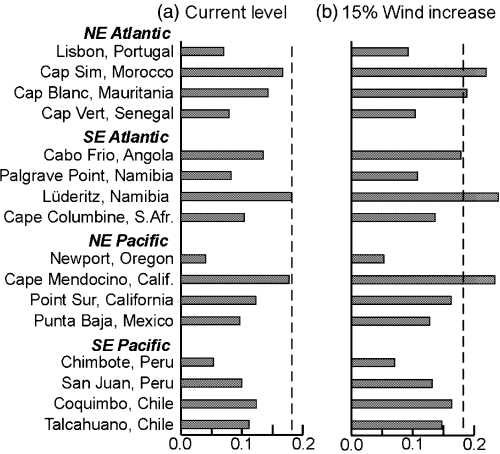 same areas with a 15% increase in “upwelling favorable winds” (Bakun, 2004,