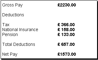 | An employee's remuneration is the complete package of material rewards they gain from the employment. The most important form of remuneration will be their pay, but they might also gain the use of a car, cut-price goods, free medical insurance, etc. These non-monetary rewards are called fringe benefits. There are basically two methods of calculating an employee's pay: time based; output based. Each method has a number of different varieties. Time rates are based on the number of units of time worked, eg hours, weeks. Hourly rates are most common, eg £5.00 per hour for 30 hours a week as a counter assistant. There is often a basic rate for each hour worked up to an agreed number of hours a week. If more hours are worked, then these are paid at a higher rate, as overtime. The payment of a salary is also related to work over a period of time, though in this case it is a year. An annual salary is agreed which is then usually divided into twelve equal parts. Thus an employee is paid one twelfth of their annual salary for every month worked. The actual amount paid will usually start with a basic sum. People often then receive additional pay, eg for the number of years worked with the employer, for accepting specific extra responsibilities, for gaining additional qualifications. A salary is a common method of payment in administrative or professional posts where it is difficult to work out the number of hours that will need to be worked or define the output. The simplest output-based wage payment system is a piece rate in a manufacturing business. This is based on the number of times the employee completes a particular task. Piece rates are meant to encourage employees to work hard but may only be suitable if the output is repetitive and simple. The unit of output must be easy to measure without argument. The payment of a commission is in a way a type of piece rate, except that the unit of output is not a product but a sale. The commission will often be a percentage of the value of the sale. Salespersons can be partly paid in commission, so much for every sale. Payment by commission encourages sales and means that staff are paid out of the extra income they generate. Another much more modern method of payment, which is also related to output, Is performance-related pay. The employee is given a target. The targets can be very simple, e.g. working a number of days without absence. However, managers can be given more complex targets. For example, a sales manager can be rewarded for increasing the number of active clients, or a headteacher for increasing the number of students on roll. For whatever reason it is given, a bonus will be awarded for reaching a numerical target. Target setting is becoming an increasingly important part of calculating pay. However, it is important that targets are well thought out. If they are too low, they are likely to have little effect. Little extra effort will be needed to reach them. However, targets that are so high that they are unlikely to be met may also have little effect. Worse than this, employees may decide that any more than a minimum effort is pointless as they will not be rewarded. In fact, many people's pay is made up of a basic pay which is time-related and then a bonus that is linked to output or sales, etc. This bonus is an incentive to reach a target. The basic pay could be based on the number of hours worked or an annual salary. By the Employment Protection Consolidation Act 1978, an employee must receive an itemised pay slip. This will show gross pay (pay before any deductions), net pay (the amount actually "taken home") and any deductions. The two most important deductions will be income tax and national insurance contributions. Other possible deductions may be contributions to a pension fund or trade union. An example of this is shown below.