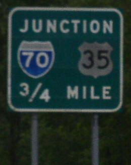 A BGS on EB I-70. NOTE: No mileage on the BGS.