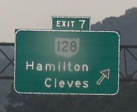 Ohio State Route 128 is the main north-south highway in Western Hamilton County. OH St Rt 128 passes through the following town in Hamilton County. Miamitown OH St Rt 128 is not multi-plexed in Hamilton County. OH St Rt 128 intersects the following highways in Hamilton County. U.S. Rt. 50, near Cleves. Interstate 74, near Miamitown. Interstate 275, near Miamitown. U.S. Rt. 52, near Miamitown.