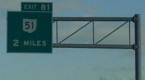 Ohio State Route 51 is a north-south highway in Southwestern Ottawa County. This runs from the Ottawa/Wood County Line, near Millbury, to the Ottawa/Sandusky County Line, near Elmore. OH St Rt 51 passes through the following towns in Ottawa County. Genoa Elmore OH St Rt 51 is not multi-plexed in Ottawa County. OH St Rt 51 intersects the following highways in Ottawa County. Ohio State Route 795, near Millbury. Ohio State Route 163, near Genoa. Ohio State Route 105, near Elmore. Interstate 80, near Elmore. Interstate 90, near Elmore. Ohio Turnpike, near Elmore.