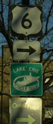 BGS on WB OH St Rt 2. Junction sign on NB OH St Rt 4. A guide marker in Downtown Sandusky on NB OH St Rt 4. A guide marker on EB U.S. Rt. 6 in Sandusky. EB U.S. Rt. 6 in Sandusky. A EB guide marker. A guide marker in Sandusky. A guide marker on WB U.S. Rt. 6 in Sandusky.